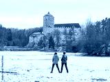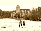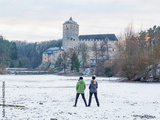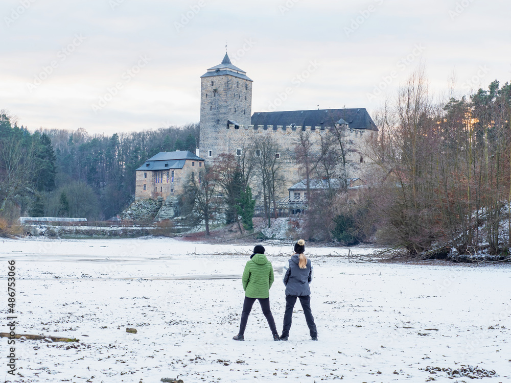 Teenagers watch Hrad Kost, the Kost castle panorama