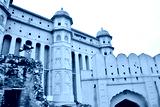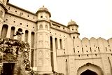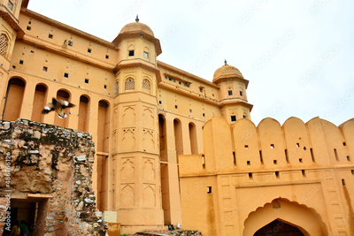 View at the Mughal Fortress Walls of Amber Fort in Amer, near Jaipur, in Rajasthan, India