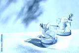 Summer refreshing lemonade drink or alcoholic cocktail with ice, rosemary and lemon slices on pastel light green surface. Fresh healthy cold lemon beverage. Water with lemon.
