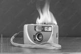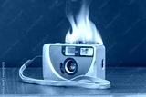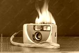 The camera burns with fire on the table, the battery ignites. The cause of the fire in the apartment, short circuit, old equipment.