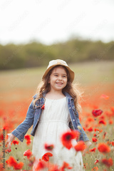Pretty little girl on a poppy field, outdoor