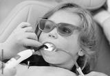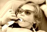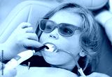 pediatric dentist seals the teeth of a little girl in a pediatric dental clinic. A doctor using dental ultraviolet curing light to polymerize a seal