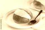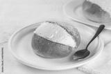 The Maritozzo. Classic sweet italian pastry, packed full of whipped cream. The dough-based bun is typically eaten in Rome for breakfast. Close-up.