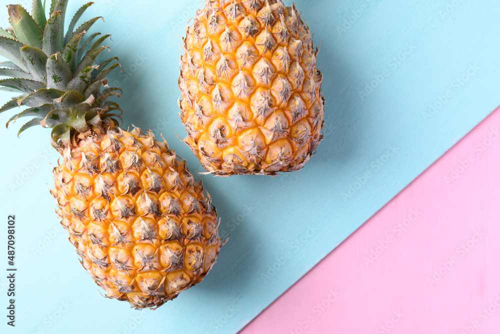 Fresh pineapple fruit on pastel color background, Tropical fruit