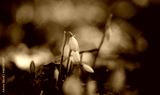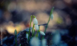 wild white snowdrops growing from the forest ground