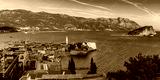 Panoramic sunset view of The Old Town of Montenegrin town Budva on the Adriatic Sea, Montenegro