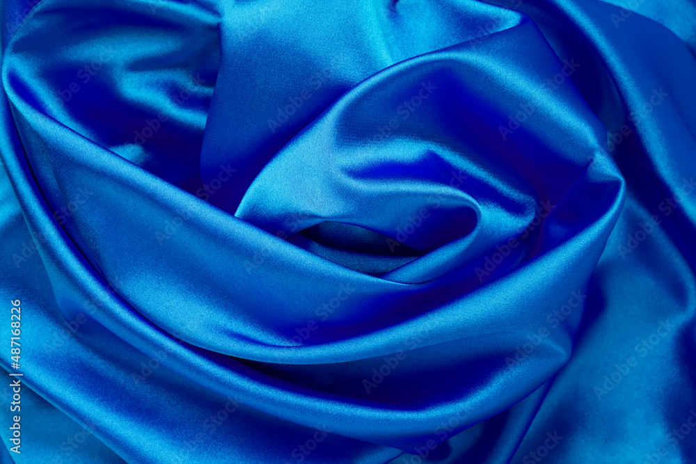 Textile background. Blue silk. Copy space. Closeup.