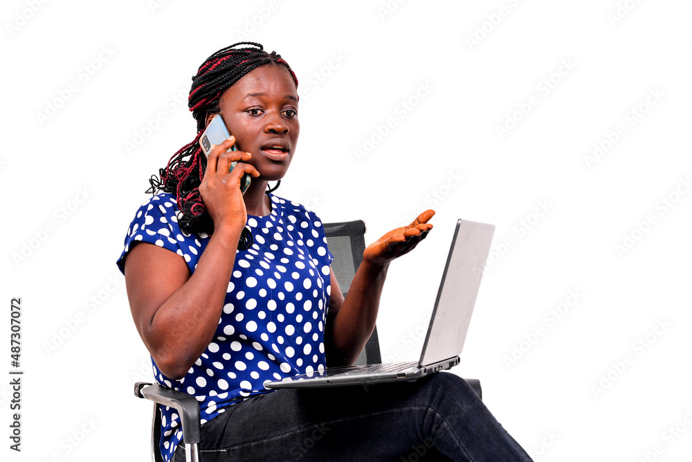 portrait of a beautiful businesswoman working from home using laptop and cellphone.