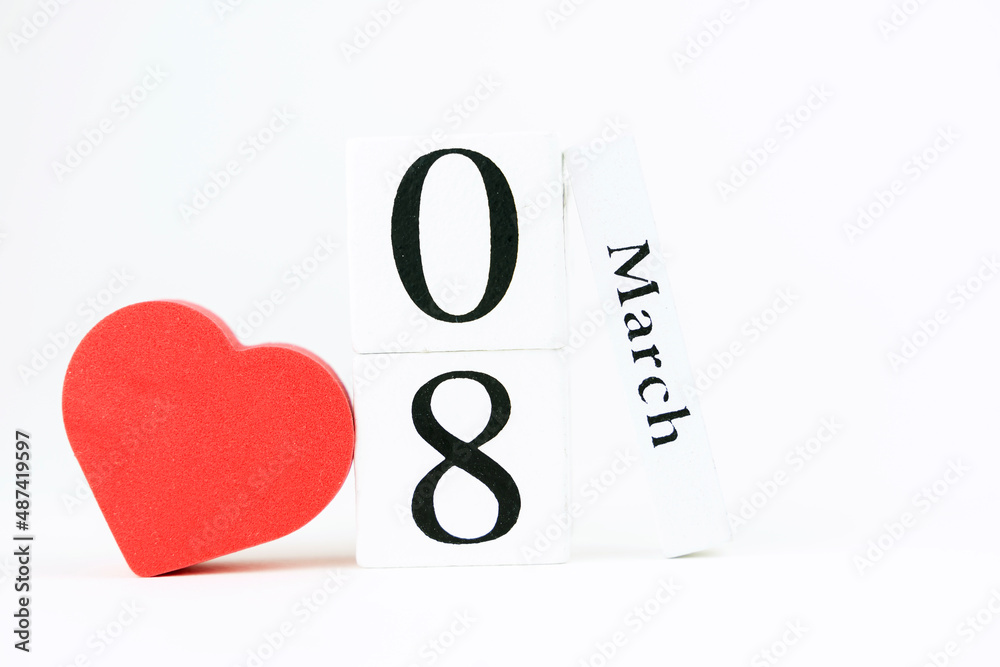 perpetual calendar for 8 mara and heart, international women's day, women's day holiday concept