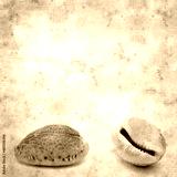 stylish textured old paper background with small Cowrie shell