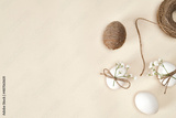 Directly above shot of natural easter eggs on the bright background