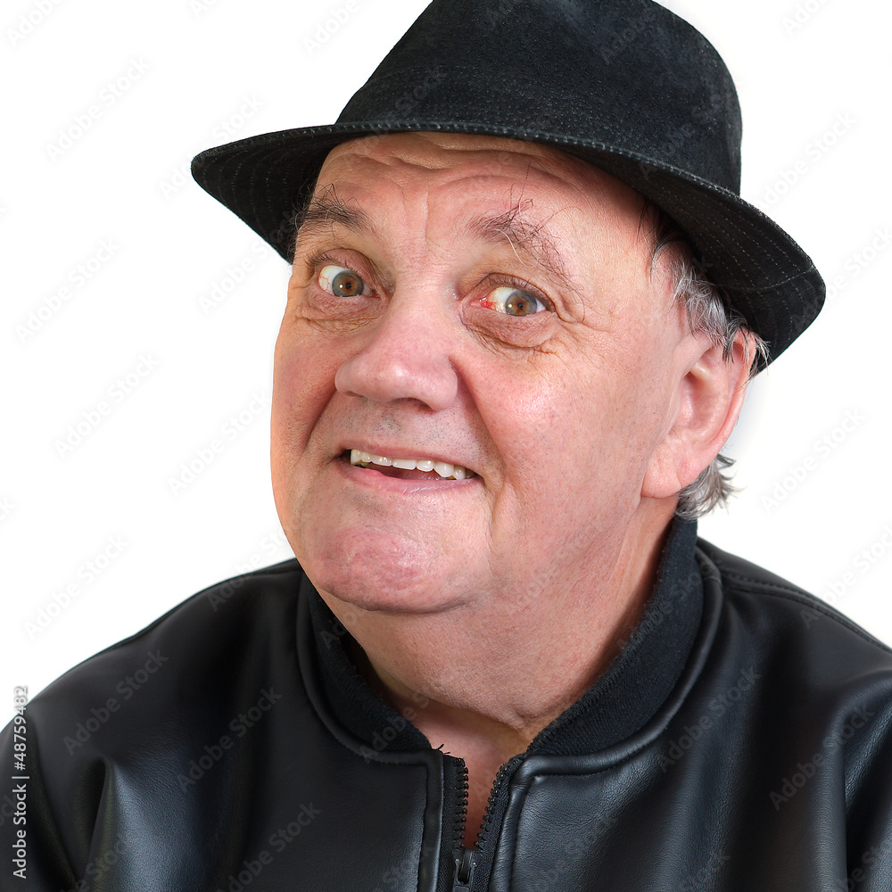 portrait serré homme chapeau sur fond blanc