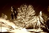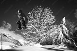 snowboarder in salto su neve fresca