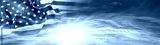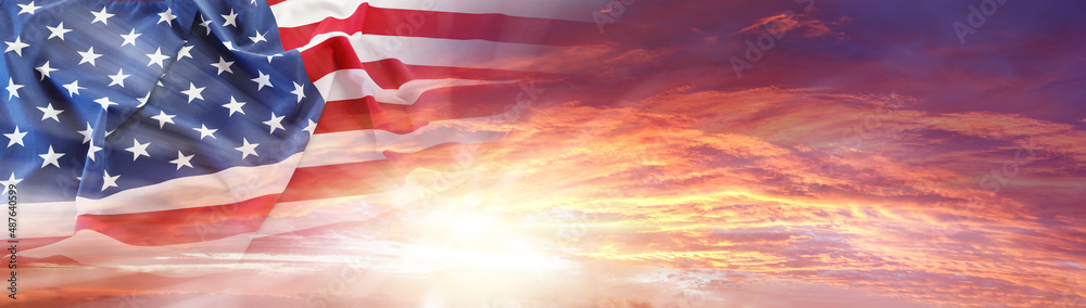 American flag in sunny sky. Wide web header banner