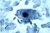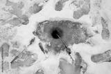 ice fishing. winter fishing. The fishing rod lies in the snow