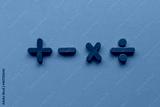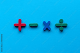 Colorful mathematical shape (Plus, minus, multiply, divide) on blue background.