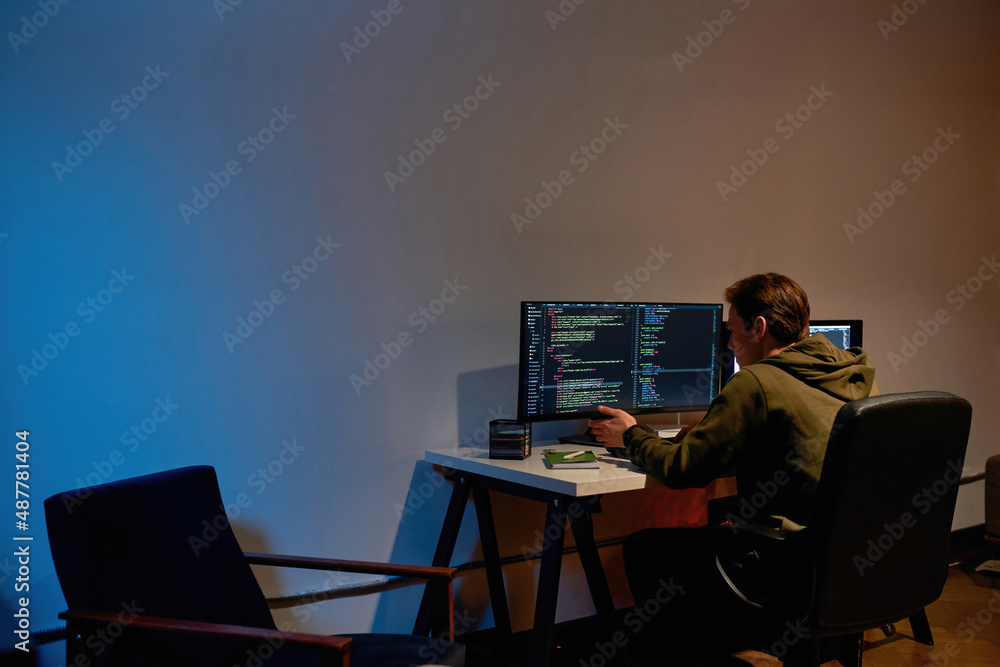 Male IT developer programming script or code