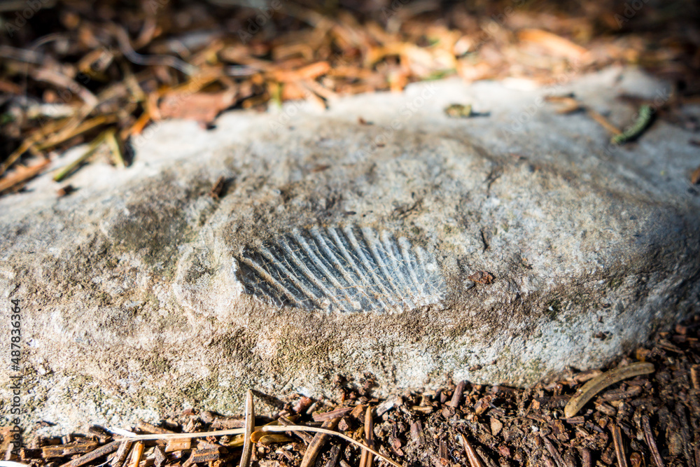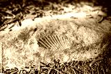 Closeup view of a shellfish fossil