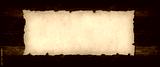 Old paper horizontal banner. Parchment scroll on a wood board
