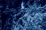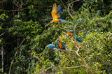 Blue-and-yellow macaw (Ara ararauna) flying in peruvian amazonas rainforest in madre de dios