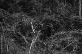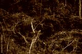 Lone scarlet macaw flying in front of amazon rainforest showing its back feathers