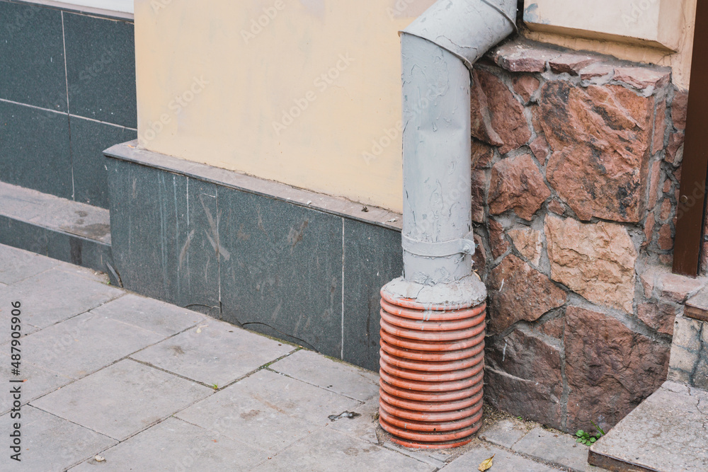 Drainage system of building. Connection. Pour. Waste. Place. City. Technology. Urban. Way. Pathway