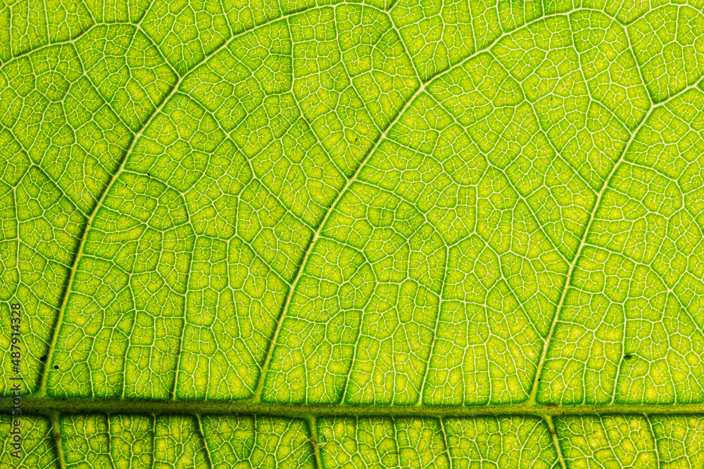 Detailed green leaf veins textures for backgrounds and wallpaper. Texture background. Abstract background. Macro photography. Close up