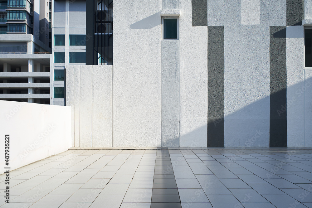 Floor with wall in white, grey and black stripes design