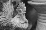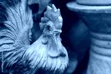 Close up shot of a rooster statue for decoration put isolated in the garden.