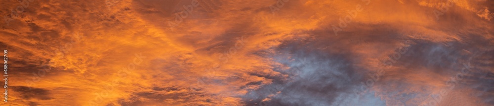 panorama sur les formes des nuages rouge et oranges pendant un coucher de soleil