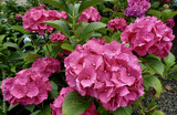 Closeup of blossom pink Hydrangea Glowing Embers in the garden