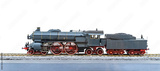 Antique model of old train locomotive isolated on white background