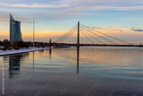 Modern Bridge in the City Center of Riga. Riga the capital of Latvia. Baltic states. Europe.