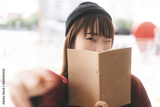 Portrait of young cute asian teenager student woman take a selfie photo by mobile phone