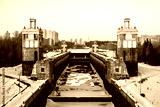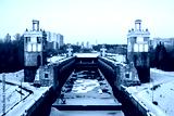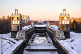 Floodgates on Moscow Canal at Moskva River in winter, Moscow, Russia