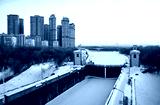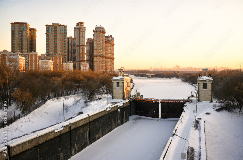 Floodgates on Moscow Canal in winter, Moscow, Russia