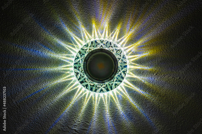 ceiling lamp with faceted edges. Beautiful glow of the lamp