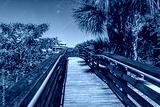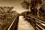Marco Island near Naples Florida in Coller County with wooden boardwalk path to Tigertail Beach access lagoon on sunny summer day with nobody in tropical landscape