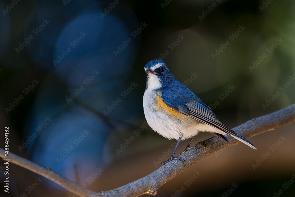 Red-franked bluetail perching on the tree branch.