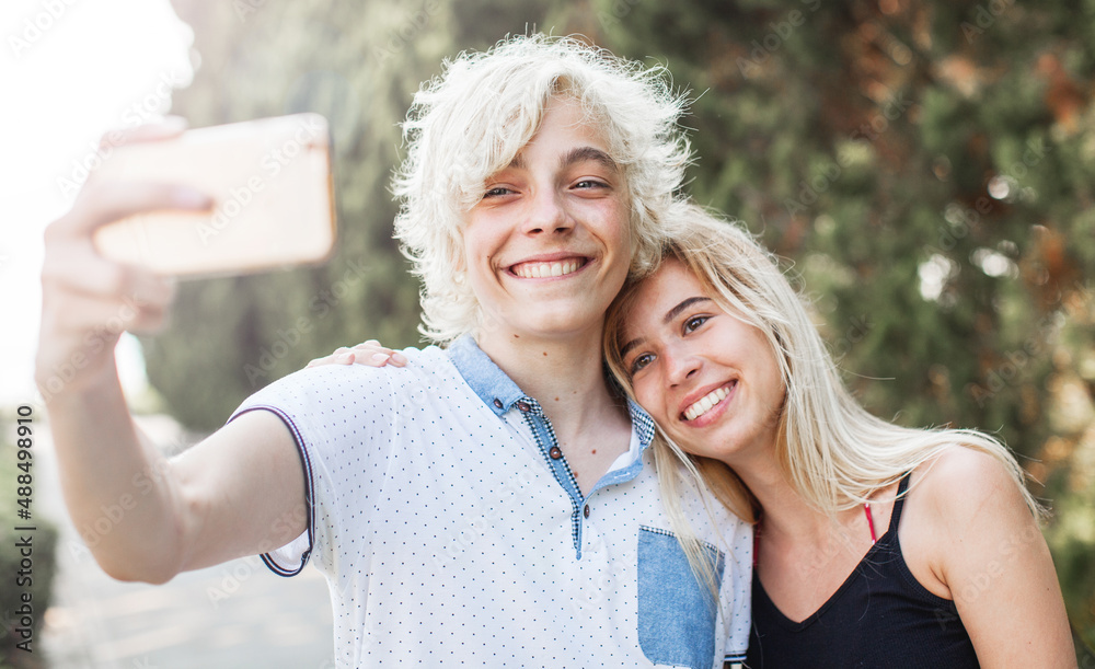 Young smiling couple taking a selfie portrait