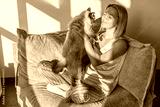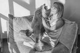 Woman with cat on couch at home