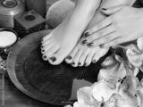 female feet at spa salon on pedicure procedure