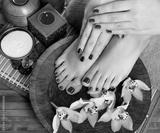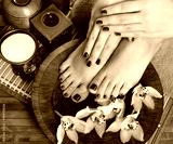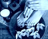 female feet at spa salon on pedicure procedure