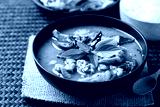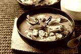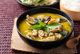 Thai food, Green curry chicken eating with rice noodles and fresh vegetables