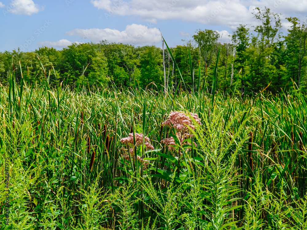 A beautiful shot of a field under the cloudy skies in Mentor Marsh