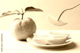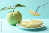 Sliced Guava fruit on plate eating by fork, Tropical high vitamin C fruit