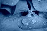 Macro view of blue hydrangea flower with purple tint and water droplets