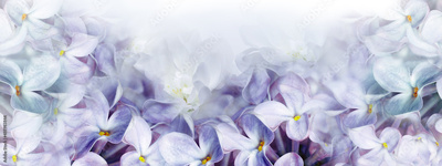 Floral spring background. Lilac bouquet, purple flowers and petals. Close-up. Nature. Lilac bunch.