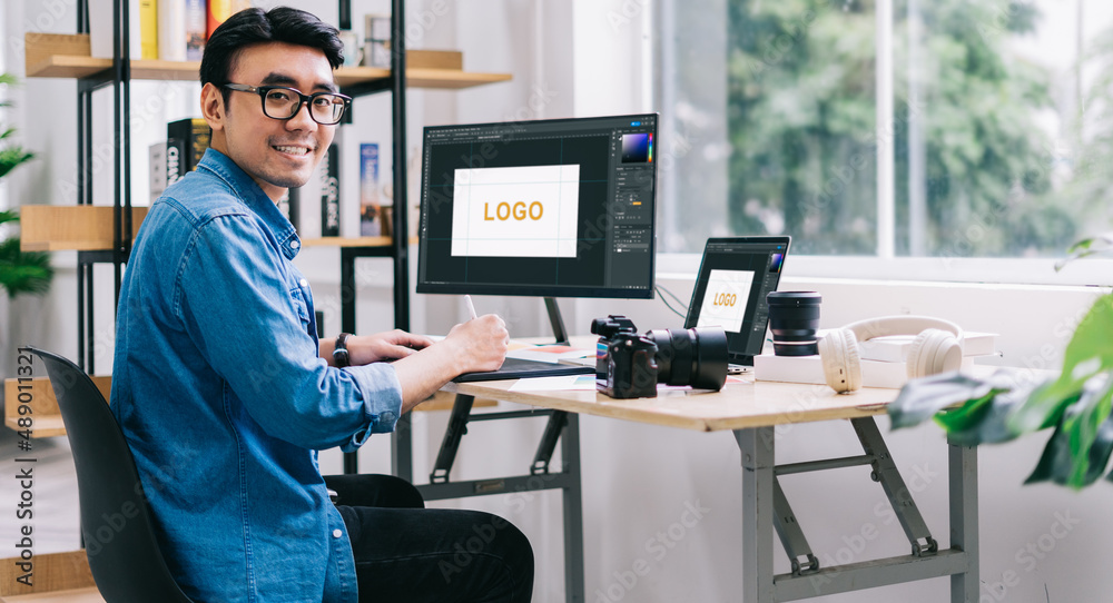 Young Asian designer working at office