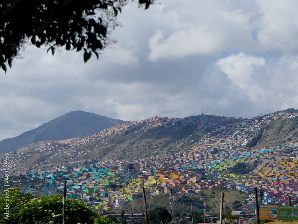 Sicht auf das Armenviertel El Paraiso in Bogota, Kolumbien